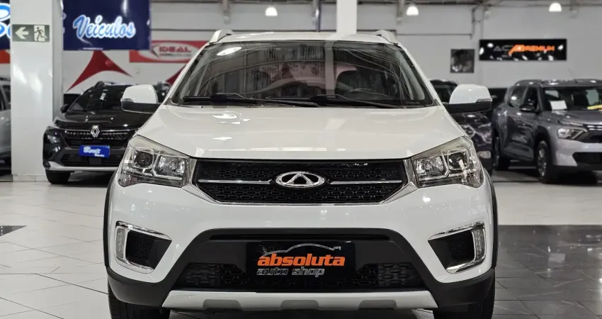 Chery Tiggo 2 Look 1.5 Flex Automático 2019, na cor branca, com apenas 38.000 km. Um SUV compacto completo, com baixíssima quilometragem e o melhor custo-benefício da categoria, unindo design moderno e altura do solo ideal.