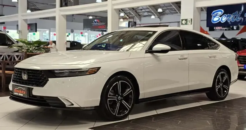 O Honda Accord Hybrid Touring 2023 é a máxima expressão da engenharia japonesa, combinando a sofisticação de um sedan de luxo com a eficiência revolucionária do sistema e:HEV de 207 cv. Equipado com dois motores elétricos e um 2.0 de ciclo Atkinson, ele oferece uma aceleração linear e silenciosa que redefine o prazer de dirigir na categoria premium. O modelo se destaca pelo interior minimalista com acabamento impecável, contando com uma central multimídia flutuante de 12,3' e o exclusivo sistema de som Bose de alta fidelidade. No quesito segurança, o pacote Honda Sensing traz tecnologias avançadas como frenagem autônoma e assistente de permanência em faixa com precisão cirúrgica. É a escolha definitiva para quem busca status, o máximo em economia de combustível e o refinamento de um dos melhores sedans do mundo.