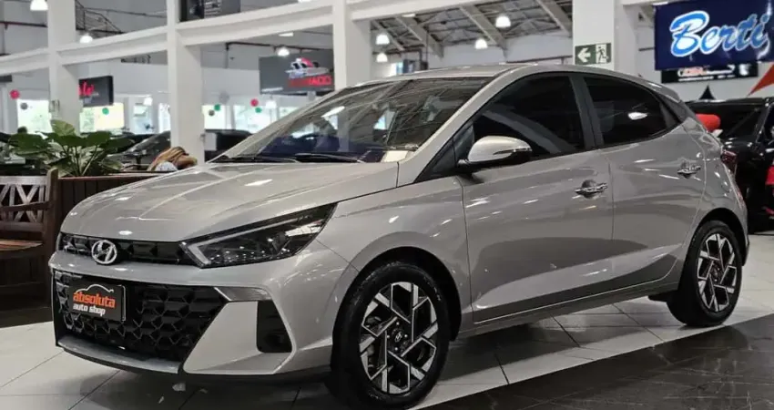 O Hyundai HB20 Platinum 1.0 Turbo 2025 combina o desempenho empolgante do motor TGDI com a suavidade do câmbio automático de 6 marchas, sendo referência em tecnologia. O design moderno é acentuado pelas luzes diurnas em LED e lanternas integradas, mantendo o hatch com um visual sofisticado e uma presença marcante nas ruas. A versão Platinum entrega um interior refinado com painel digital colorido, chave presencial e o sistema BlueLink para total conectividade através do seu smartphone. É a escolha ideal para quem busca segurança máxima e agilidade, oferecendo o equilíbrio perfeito entre economia de combustível e a performance de um motor turbo.