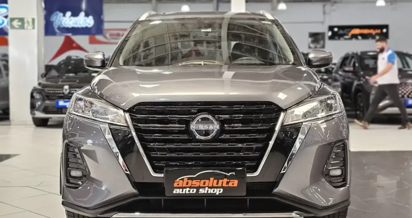 Nissan Kicks Advance Plus 1.6 CVT 2025, cinza, com apenas 16.000 km. O SUV que une a confiabilidade japonesa com tecnologia de ponta, entregando o máximo de conforto e economia em sua versão mais atualizada.