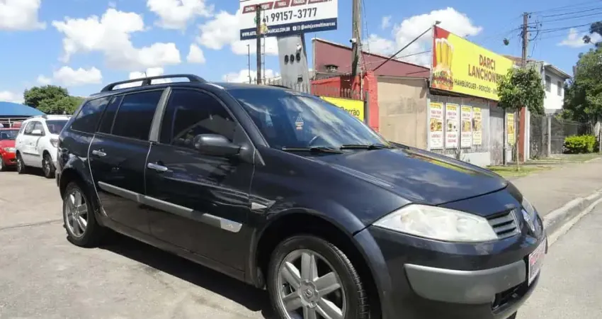Megane Grand Tour Dynamique 2008, motor 1.6 16v flex com 115cv, câmbio manual, direção elétrica, ar condicionado, freios ABS, airbag, vidros e travas elétricas, volante multifuncional com regulagem de altura e rodas de liga leve.