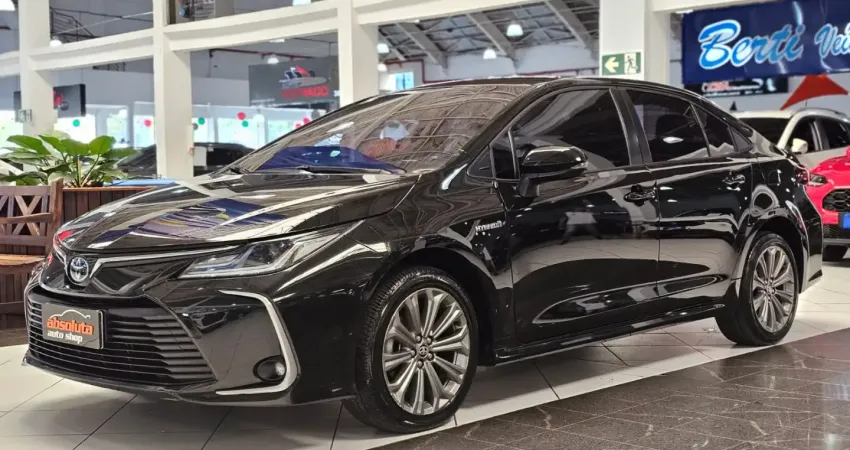 O Toyota Corolla Altis Hybrid 2023 é a referência em eficiência tecnológica, unindo o motor 1.8 flex ao sistema elétrico auto-recarregável para um consumo exemplar. A condução é marcada pelo silêncio e suavidade, contando com o câmbio Hybrid Transaxle que prioriza o conforto máximo e a economia de combustível na cidade. Esta versão topo de linha oferece o pacote de segurança Toyota Safety Sense, com controle de cruzeiro adaptativo, frenagem autônoma e farol alto automático. O design é elegante e discreto, complementado por um interior refinado com acabamento em couro claro e teto solar elétrico, exclusivo da configuração Premium. É a escolha definitiva para quem busca o prestígio do sedã mais vendido do mundo com a sustentabilidade da propulsão híbrida e o menor custo de manutenção da categoria.