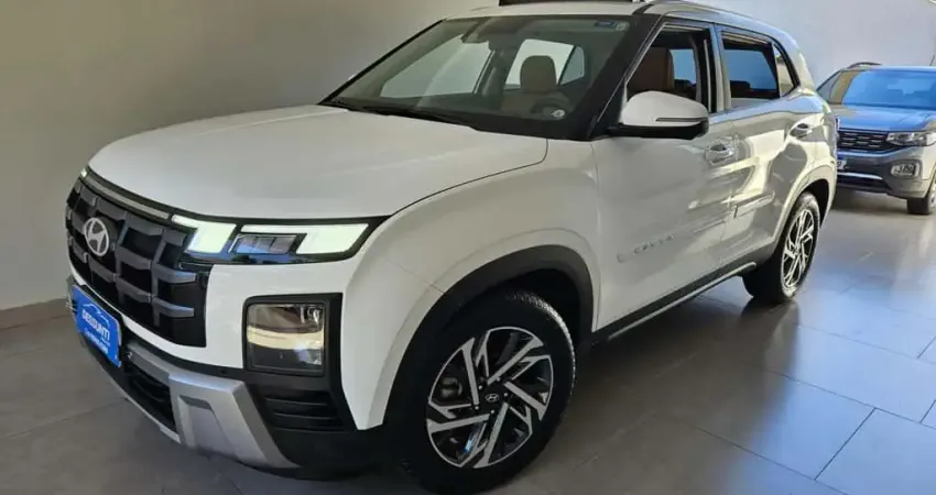 Creta Turbo Platinum Versão Nova 24/25 com apenas 10.370km, Revisado, Na Garantia de Fabrica ate 12/2029, Tirado Zero em Maringá, Teto solar Elétrico e Panorâmico, Bancos em Couro com Ventilação, Piloto Automático Adaptativo, Assistente de Farol alto, Ar digital dual zone com saida para Bancos Traseiros, chave de Presença e Partida no Botão, Sensor de Estacionamento Frente e Traseiro e Câmeras 360 graus, Freio a Disco 4 Rodas, Alerta de Colisão Frontal com Frenagem Automática de Emergência, Assistente de Permanência e Centralização em Faixa, GPS, Carregador de Celular por Indução, Informações do Trânsito, Indicador de Fadiga, Retrovisores Externos Rebatíveis Eletricamente, Faróis Automatizados com Regulagem de Altura, Freio de Estacionamento Elétrico, auto Hold, 3 Modos de Condução, Comandos e Visão Remota através de Aplicativo, Carro tecnológico, Seguro e confiabilidade. video= (link removido)