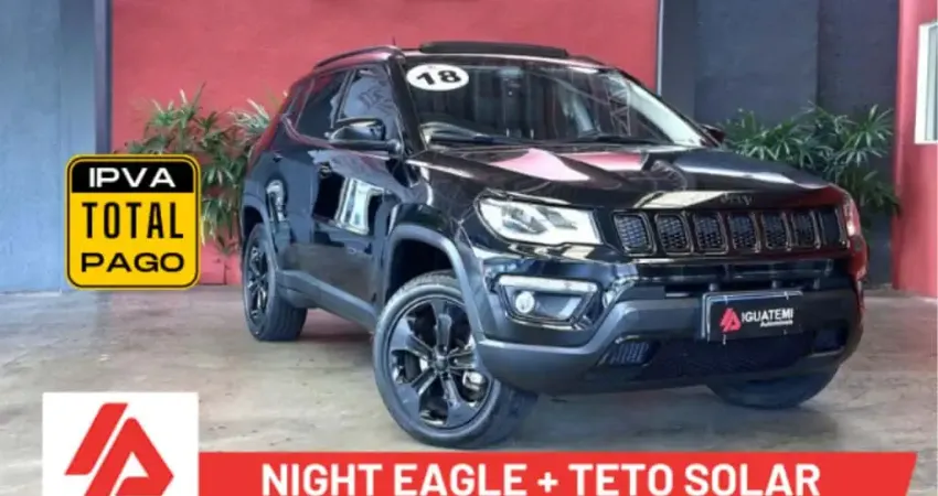 Belíssimo Jeep Compass Edição Night Eagle com visual 'all black' exclusivo, teto solar panorâmico e tração 4x4. Motor Diesel 2.0 extremamente robusto, com o torque e a economia ideais para viagens longas.