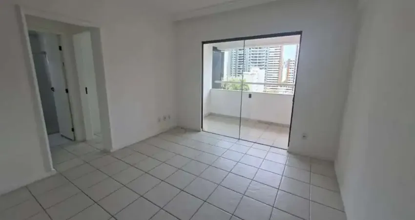 Apartamento de quarto e sala, 50m2, andar intermediario, ventilado, cozinha americana, varanda ampla, uma vaga de garagem.