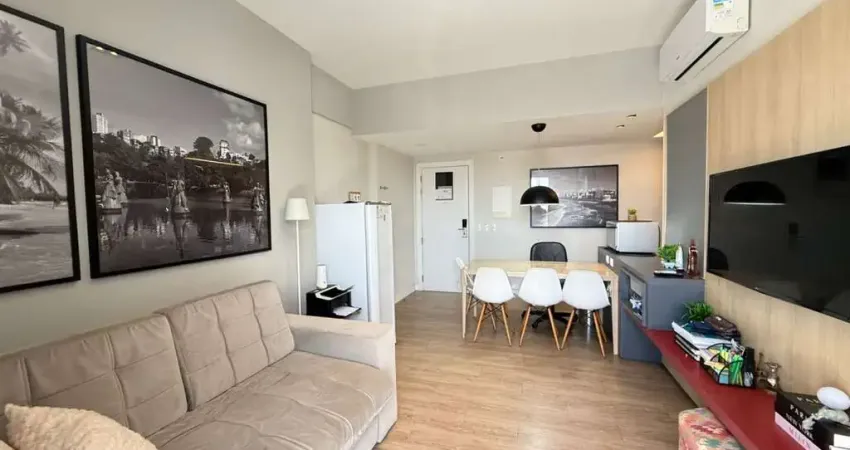 Pronto para morar! Este apartamento de 45m² combina conforto, praticidade e localização privilegiada. Totalmente mobiliado e decorado com bom gosto, conta com armários planejados em todos os ambientes e eletrodomésticos de qualidade: micro-ondas, máquina lava e seca, lava-louças, filtro de água, forno, exaustor, cooktop, mesa com 4 cadeiras, frigobar, 2 TVs, sofá, cama, 2 aparelhos de ar-condicionado, puff, cortinas e lustres.