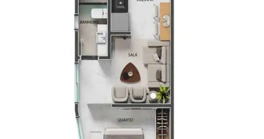 O imóvel tem 1 quarto, possui 1 banheiro, 1 sala e 1 vaga de garagem.
