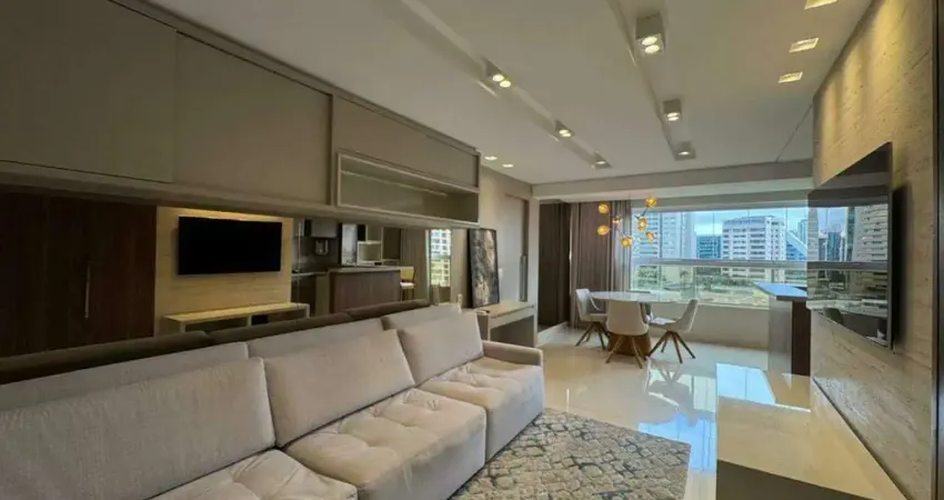 Apartamento de 1 quarto, com excelente planta, com lindo projeto, com esquema de iluminação, marcenaria e mobília.