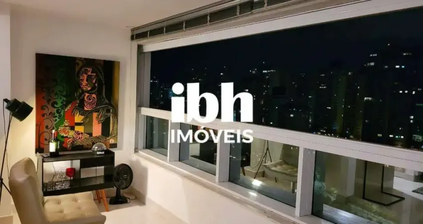 Sala para 2 ambientes, ar condicionado, lavabo, varanda integrada a sala e fechada com cortina de vidro, vista panorâmica