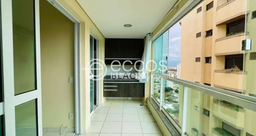Apartamento localizado na região central de Uberlândia, com 65 m² de área privativa, composto por sala com painel de TV e sacada com marcenaria e cortina, um quarto, banheiro social, cozinha com armários planejados, área de serviço independente com armário e uma vaga de garagem. O condomínio oferece academia, brinquedoteca, portaria 24 horas, dois elevadores, além de água e gás canalizado.