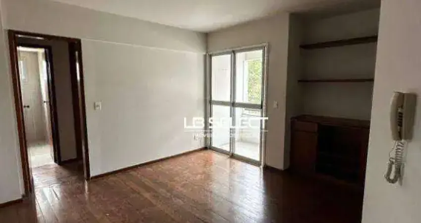 Apartamento residencial com sala, cozinha com armários, 1 quarto suíte com armários, área de serviços e 1 vaga coberta.