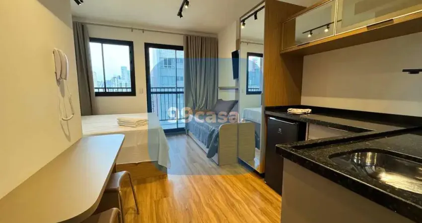 - Studio mobiliado, com móveis planejados e decoração contemporânea