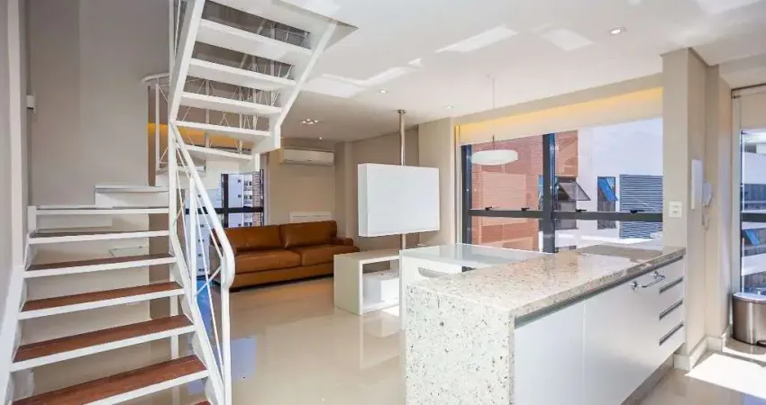 Apartamento, à venda, duplex, 1 suíte com terraço, andar alto com vista, 73,93m² privativos, 2 banheiros, sala para dois ambientes, cozinha, 2 vagas de garagem, lavanderia, condomínio clube com estrutura completa, academia, piscina coberta e descoberta, salão de festas, salão gourmet, sala de reuniões, portaria, localização privilegiada próxima ao Museu Oscar Niemeyer e do Centro Cívico, na esquina das Ruas Manoel Eufrásio e Alberto Foloni.