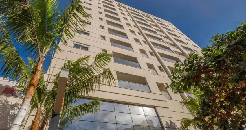 O apartamento possui 58,2 m² de área útil e dispõe de 1 dormitório, sendo 1 suíte com cama, armários planejados, ar-split e banheiro completo. A sala, com sofá e painel de TV, é integrada à cozinha planejada, que está equipada com fogão, geladeira e micro-ondas. Conta também com lavabo, sacada ampla com churrasqueira e fechamento skinglass, lavanderia e 1 vaga de garagem.