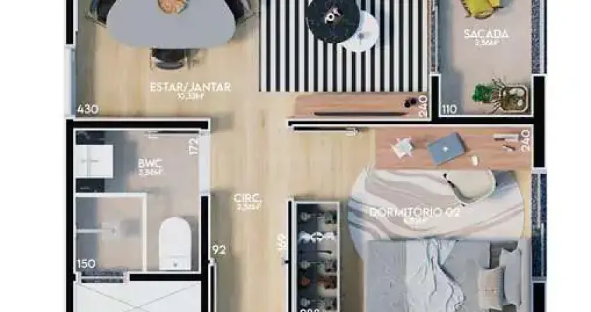 - ?52m2 (1 suíte + 1 quarto)