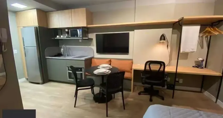 Studio com 1 dormitório, sala, cozinha e banheiro completo, Totalmente Mobiliado, finamente decorado e equipado com eletrodomésticos, uma cama de casal e um sofá cama Herval tamanho casal. Muito iluminado e ventilado. Excelente opção para moradia ou investimento, grande rentabilidade com locação convencional ou por curta duração. Cadastrado em plataforma de locação por (link removido)ínio conta com infraestrutura diferenciada com piscina adulta com deck molhado, piscina com raia, espaço gourmet com terraço, hall de entrada com lareira, bicicletário com bicicletas já entregues pela construtora, lavanderia coletiva em um espaço diferenciado e moderno. Possibilidade de entregar já mobiliado e decorado, pronto para locação. Nova tendência: você no centro de tudo. Estudamos seu imóvel no negócio. Além deste, mais de 25 mil opções em nosso site.
