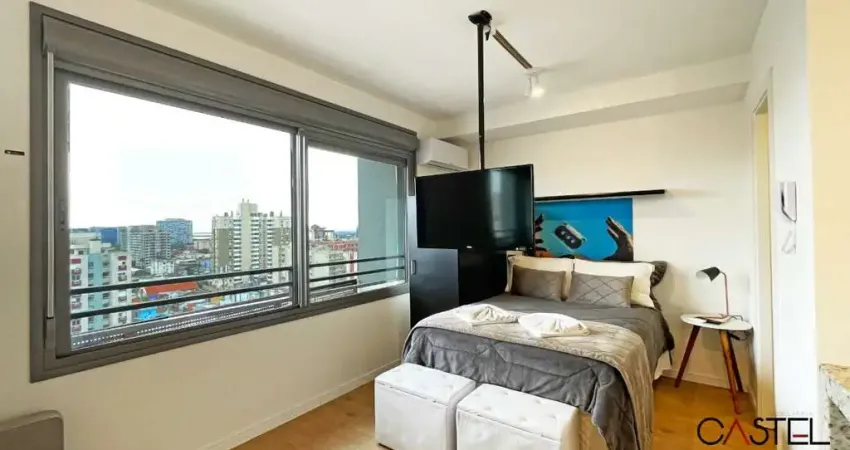 Excelente studio mobiliado no 14° andar, com 27,79 m² privativos e vista para o Guaíba. O studio possui armários no quarto, cama, TV, ar condicionado, espaço home office, cozinha equipada com geladeira, cooktop, micro-ondas, louças e talheres. Conta com janelas amplas que proporcionam excelente posição solar. O condomínio JP Redenção oferece tomadas tipo USB, fechadura digital nas unidades privativas para maior segurança e praticidade, ideal para locações de curta temporada (Airbnb, Booking, entre outros). Há também box de estacionamento rotativo. Localização privilegiada, próximo à UFRGS, Hospital Santa Casa e Hospital de Clínicas, além de fácil acesso a mercados, bancos, transporte público e farmácias.