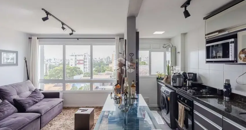 Apartamento à venda com 1 dormitório/quarto, 1 vaga/box de garagem, com churrasqueira, móveis planejados no bairro Jardim Botânico, em Porto Alegre/RS.