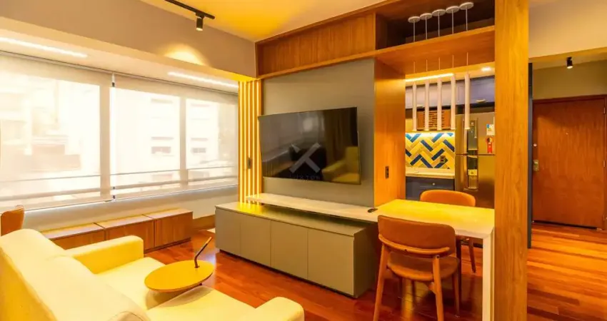 Apartamento mobiliado e decorado próximo ao Parcão no bairro Mont Serrat. Com 45m², 1 dormitório, living com sacada integrada, estação de trabalho, churrasqueira, cozinha montada e equipada com área de serviço integrada, banheiro completo com ventilação natural e 1 vaga coberta e escriturada de estacionamento.