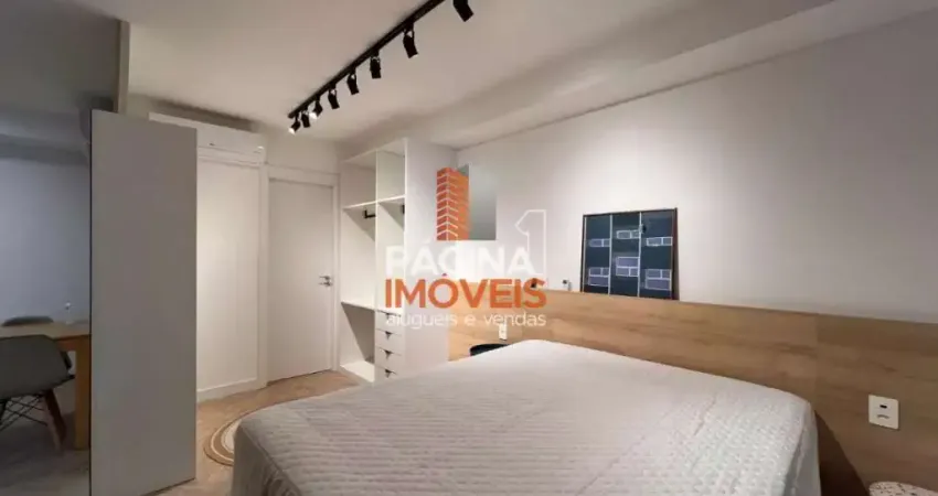 Apartamento mobiliado com 1 suíte, living com sofá, TV, split e mesa com cadeiras, cozinha com armários, geladeira, fogão cooktop de indução, micro-ondas, coifa e churrasqueira, área de serviço com máquina lava e seca, 1 vaga de (link removido)ínio com infraestrutura completa com portaria 24h, elevadores, sala fitness, bicicletário, brinquedoteca, espaço gourmet, salão de festas, piscina, piscina aquecida, sauna, playground e rooftop.