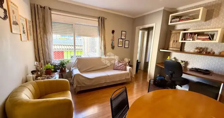 Apartamento de 1 dormitório, semimobiliado com 42 m², de área privativa. Living para 2 ambientes com cozinha americana, área de serviço com churrasqueira. Banheiro social com ventilaçãoa natural. Totalmente reformado com projeto de arquiteta, inclusive janelas novas. Ficam móveis planejados da cozinha, banheiro e dormitório. Posição lateral e orientação solar Noroeste. Uma vaga de garagem coberta e com armário.