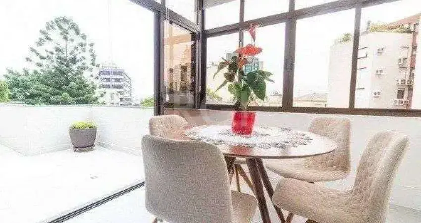 Ótimo apartamento / cobertura horizontal, no Higienópolis, com 72m² privativos, semi mobiliado, de 1 dormitório, 2 vagas e lindo terraço. Possui living amplo com rebaixe em gesso e sacada integrada que dá acesso à ótimo terraço aberto, 1 dormitório, banheiro com box de vidro e ventilação natural, cozinha americana mobiliada e área de serviço separada. Ficam móveis planejados e diversos eletros. Água quente na cozinha e banheiro. Todo com piso porcelanato. Imóvel muito ventilado e iluminado, com sol da manhã. Projetado e decorado com muito bom gosto com móveis e materiais de qualidade. Possui 2 vagas de garagem (uma coberta e outra descoberta). Condomínio com interfone, portão eletrônico, medidores individuais de gás central e água, e elevador. Localizado em ótima região, esquina com Rua Marcelo Gama, a poucos minutos da Sogipa e do Colégio Pastor Dohms, do Bourbon Assis Brasil, com todos os recursos próximos. Aceita financiamento. Agende já uma visita. ***Aproveite que os juros baixaram e as novas regras da Caixa, onde você poderá financiar até 80%, e usar FGTS ou veículo como entrada. Conte ainda com nossa IA para encontrar o imóvel ideal para o seu perfil.***Não perca essa oportunidade única para comprar seu imóvel com as melhores condições! #xD;