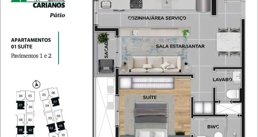 - Área do empreendimento: 10.550,39m² (Quintal Carianos Avenida + Patio)