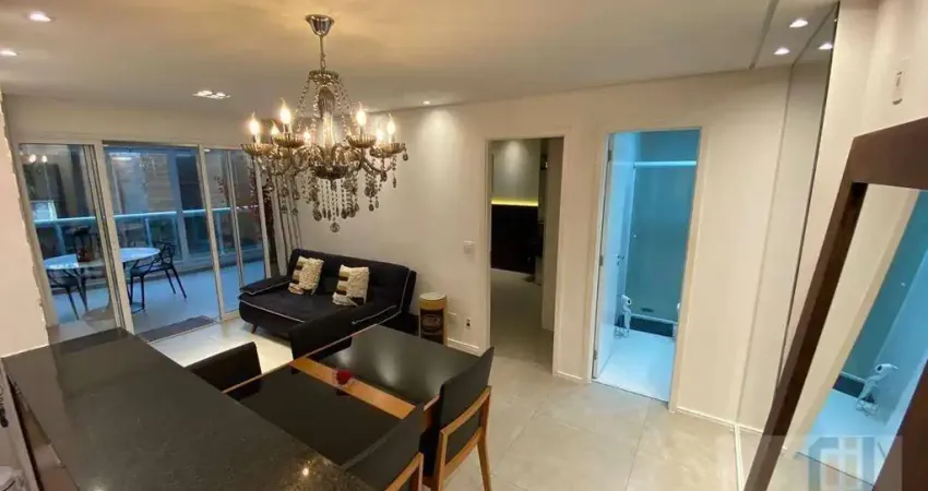 Apartamento Garden para venda no Condomínio Edifício Novare, Alphaville. Conta com 66 m² de área útil, 1 dormitório, 1 banheiro, amplo living com sala de estar e sala de jantar, cozinha repleta de armários planejados, área de serviço com lavanderia, ar condicionado, varanda gourmet envidraçada e 1 vaga coberta de garagem.