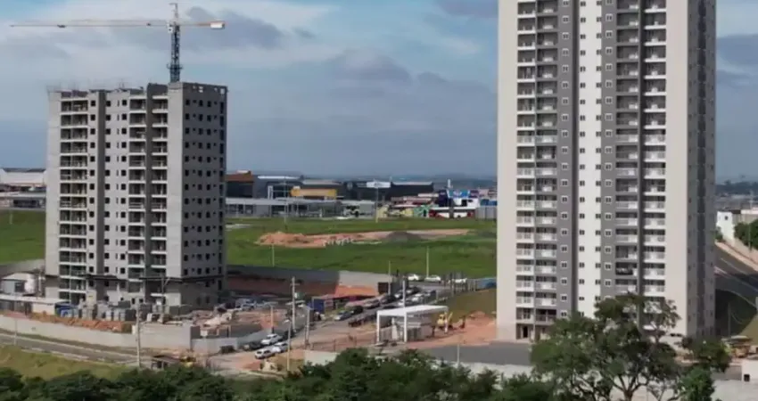 Apartamentos de dois dormitórios com suíte, 52 metros, varanda gourmet, sala ampla, cozinha com área de serviço, uma vaga de garagem.