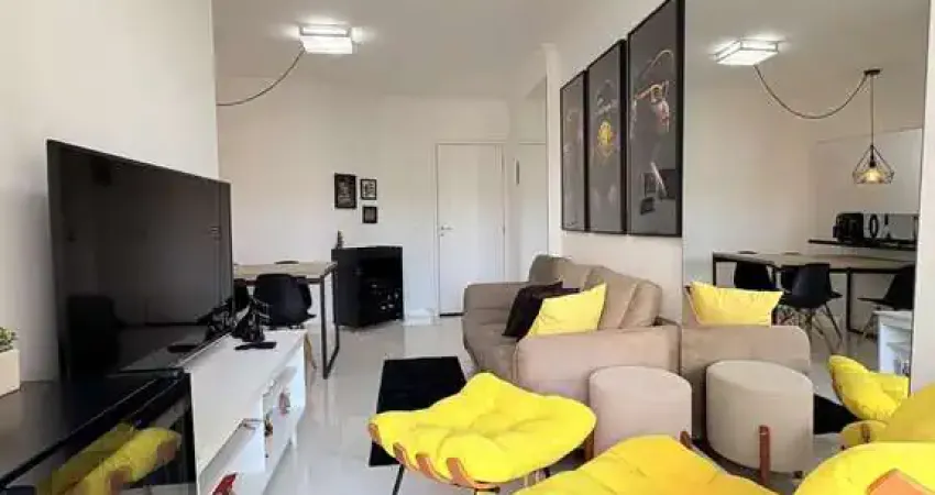 Com uma área de 60m², o apartamento conta com uma sacada, área de serviço, banheiro social, varanda, cozinha equipada com armários, interfone, ar condicionado, sala de estar e varanda fechada com vidro, proporcionando um ambiente aconchegante e funcional.