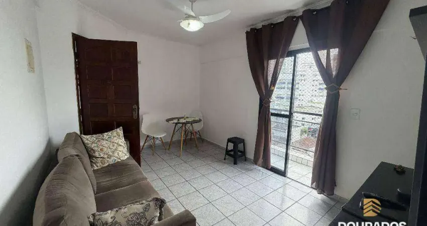 Apartamento de 1 dormitório com 2 sacadas frente rua na Guilhermina em Praia Grande SP.