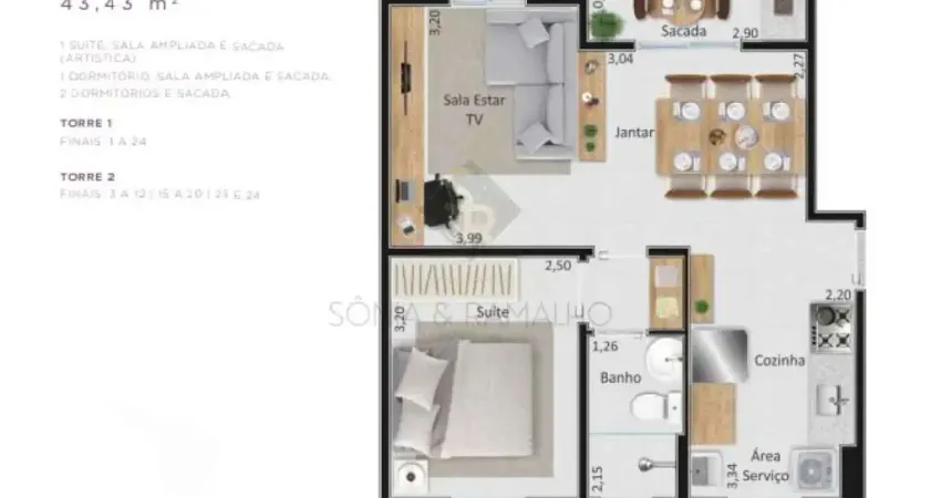 -Área útil: 43,43m²