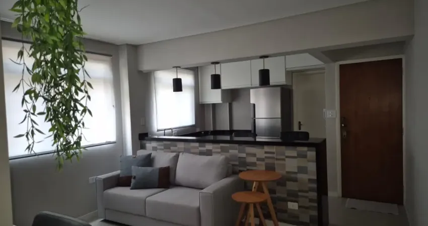 Apartamento totalmente reformado e mobiliado, com ar-condicionado e móveis planejados. Sala, cozinha americana, área de serviço, banheiro social, 1 dormitório e uma vaga de garagem.
