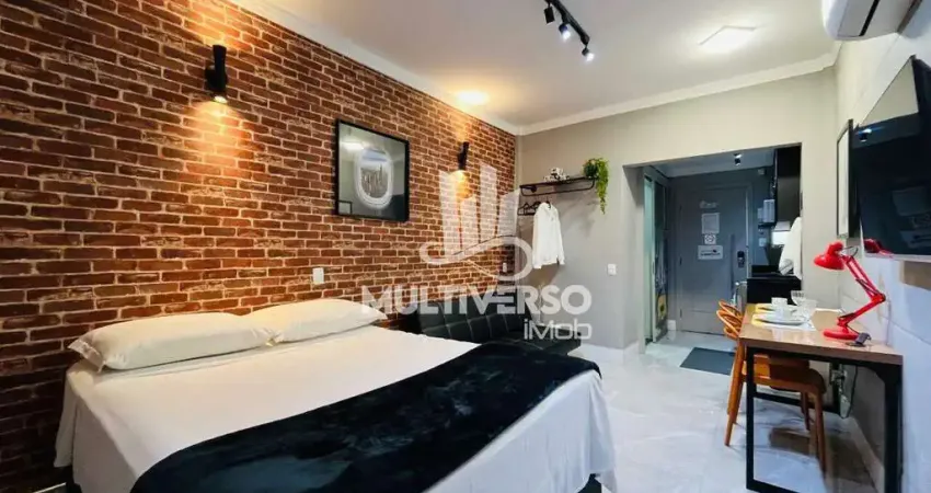 Charmoso e funcional, este kitnet no estilo estúdio está totalmente mobiliado e decorado, pronto para você entrar apenas com a mala. Um verdadeiro porteira fechada, pensado para conforto e praticidade.