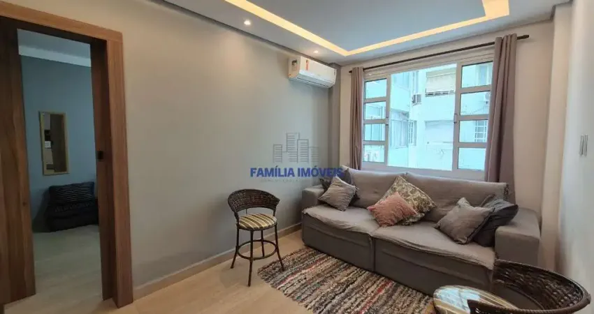 Apartamento à venda reformado com 50m², porteira fechada e completamente mobiliado é composto por sala bem iluminada, 1 quarto com armários embutidos, cozinha com armários planejados, banheiro e área de serviço. O imóvel oferece excelente aproveitamento de espaço e está pronto para morar. Conta ainda com 1 vaga de garagem e prédio com 2 elevadores. Fica localizado a menos de uma quadra da praia
