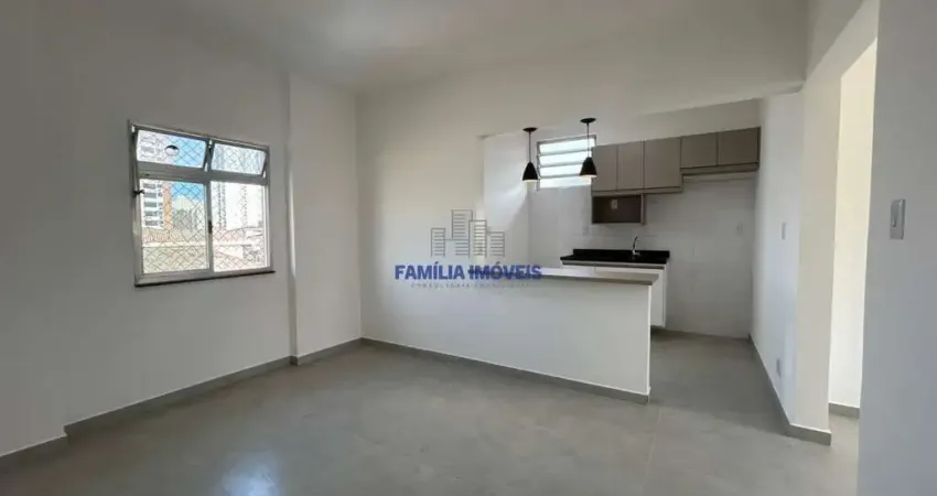 Apartamento à venda, reformado com 1 quarto, sala com hall de entrada, banheiro social, cozinha americana com armário embutido, área de serviço arejada, 1 vaga.