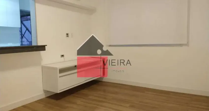 Apartamento todo reformado, 1 dormitório, cozinha americana, piso em madeira, armários embutidos no dormitório e cozinha, ar condicionado na sala, 1 banheiro, 1 Vaga de carro escriturada, 45m.