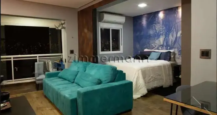 Entregue mobiliado, living para 1 ambiente, varanda, cozinha integrada, lavabo, 1 dormitório, banheiro social, bancadas em Silestone, marcenaria planejada e área de serviço.