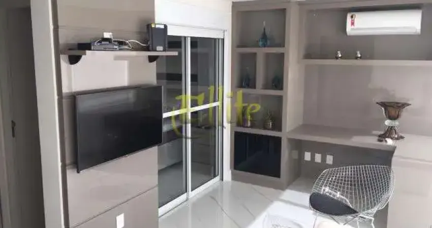 Apartamento de 57 m², 01 dormitório, sala, cozinha equipada, lavabo, totalmente mobiliado e com 01 vaga na garagem.