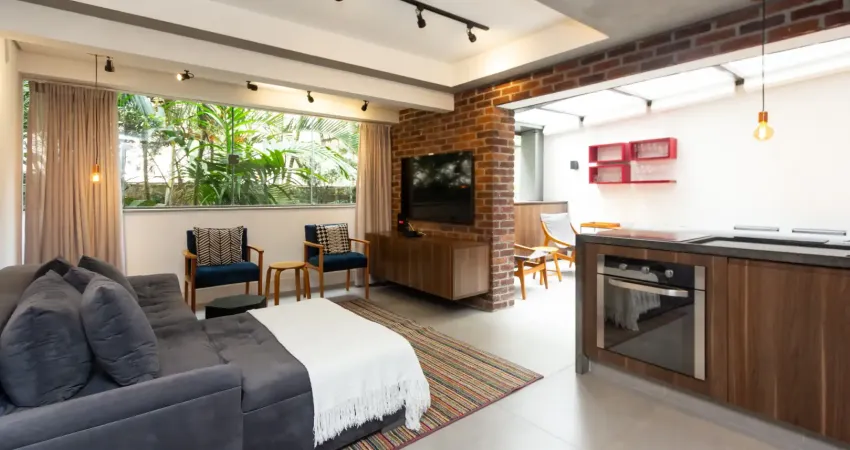 Apartamento garden mobiliado em excelente localização e pronto para morar. Ampla sala para três ambientes integrada com cozinha americana. Um dormitório, um banheiro e uma vaga de garagem. Condomínio com lazer. Agende a sua visita.