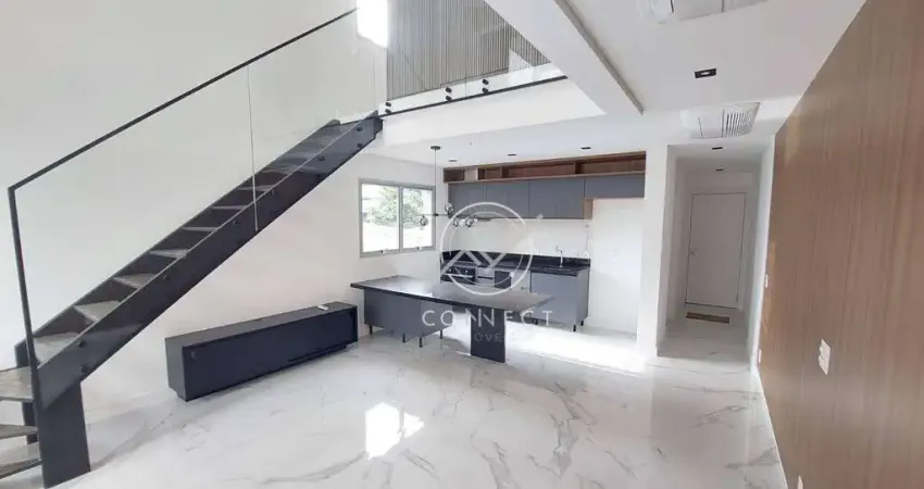 Apartamento NOVO tipo Loft Duplex de 82m2 com uma ampla sala integrada a cozinha, lavabo, área de serviço isolada, um grande terraço, na parte superior uma bela suíte com closet.