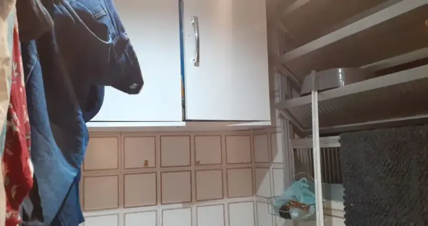 Apartamento de 35 metros, com sala, quarto com armário, sanitário com gabinete, cozinha com gabinete e armários e área de serviço com armário, vaga coberta no subsolo.
