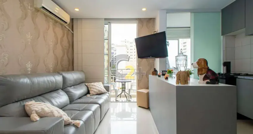 Apartamento inteiramente reformado, semi mobiliado, com ar condicionado, rico em armários e acabamentos de primeira linha.