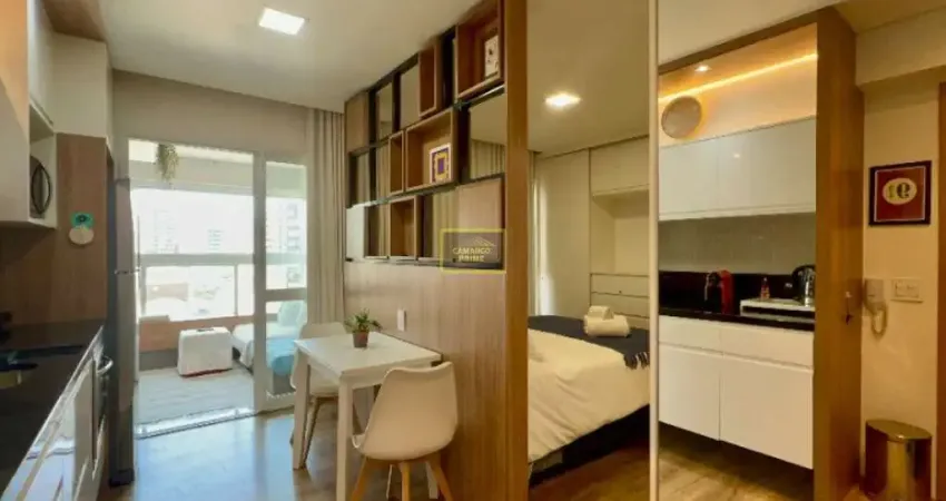 Condomínio completo: lavanderia , piscina, churrasqueira, salão de festas e mercado de conveniência no térreo. Totalmente mobiliado e decorado com cama premium Guildi e enxoval de padrão hoteleiro, cortina blackout, vidros antirruído, ar-condicionado, cozinha completa, com cooktop, forno, Nespresso, liquidificador e mesa expansível, geladeira, varanda fechada, Smart TV e Vaga de garagem.
