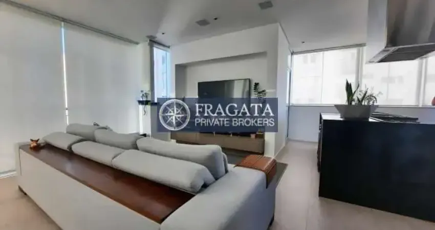 Cobertura Duplex com 1 dormitório amplo com suíte e closet, living para 2 ambientes, cozinha integrada, lavabo, banheiro social e no andar superior para receber amigos, sala, cozinha integradas.