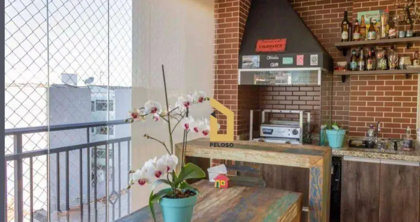 Apartamento com 1 dormitório, sala, varanda gourmet e cozinha planejada integrada com a área de serviço.