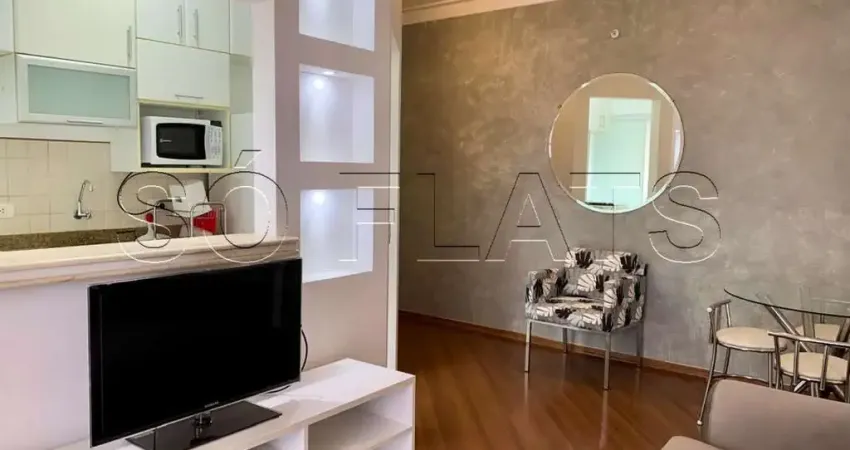 Flat mobiliado à venda com 41m², 1 dormitório, sala para dois ambientes, varanda, cozinha equipada integrada por balcão, área de serviço e 1 vaga. Ideal para moradia, locação corporativa ou investimento em flat na Saúde com alta procura.