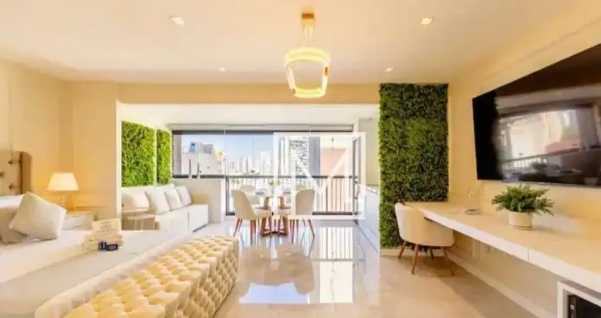 Lindo apartamento de quarto, sala, cozinha, banheiro e 1 vaga de garagem, todo equipado com móveis, TV, ar condicionado, eletrodomésticos, eletroportáteis, utilidades domésticas, mobiliário, piso e fechamento de varanda de altíssimo padrão, similar a um hotel 5 estrelas e ofertado com tudo dentro, porteira fechada