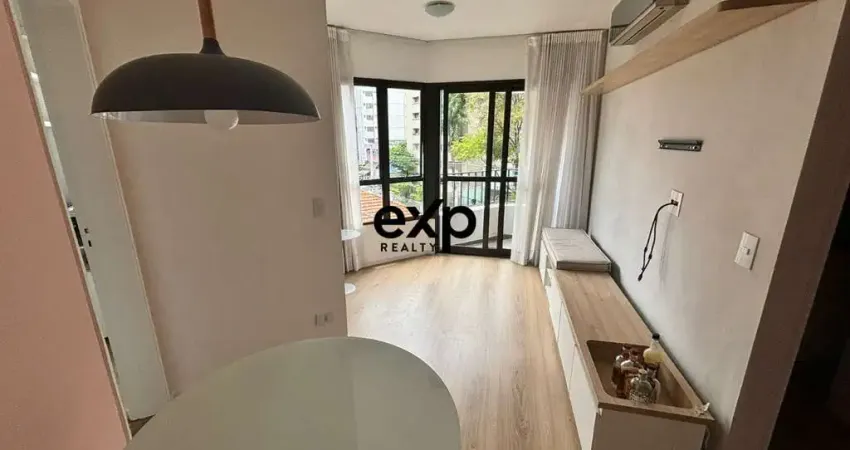 Lindo apartamento totalmente mobiliado, com ar-condicionado, à venda, na Vila Nova Conceição. São 36m² divididos em sala para 2 ambientes, sacada, 1 quarto com armário embutido, 1 banheiro, cozinha, lavanderia e 1 vaga de garagem.