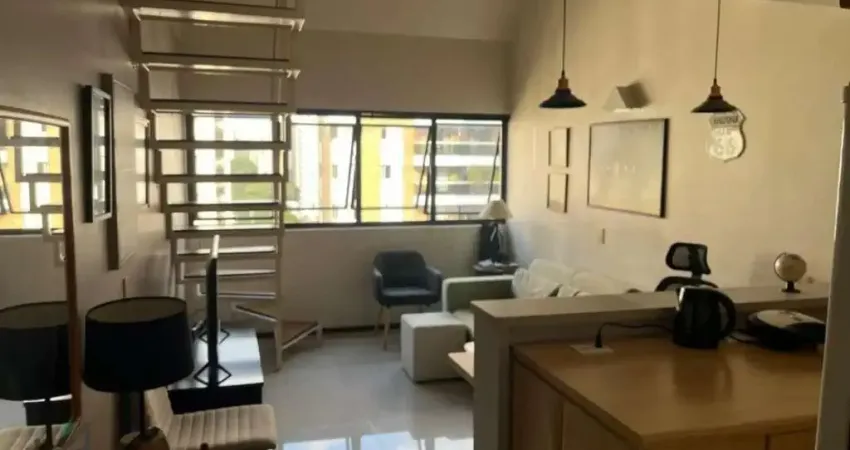 Flat com dois andares, localizado em moema na rua pintassilgo. Mobiliado, com ar condicionado, máquina de lavar roupa, tanque, fogão, chuveiro a gás e armários embutidos na cozinha, quarto e banheiro. Condomínio inclui serviço de arrumação 3 vezes por semana e uma vaga de garagem. Prédio com piscina, sauna, academia, lavanderia e portaria 24h.